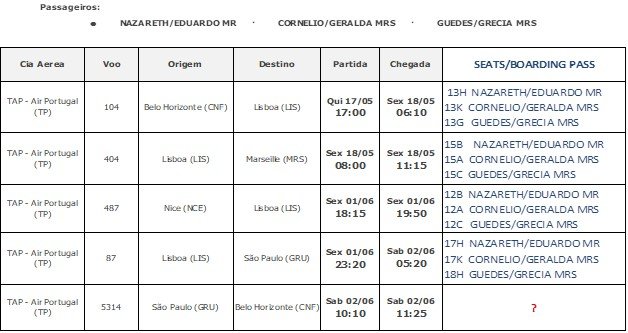 Embarque no aeroporto de Confins e fizemos uma escala em Lisboa desembarque final em Marsellie.